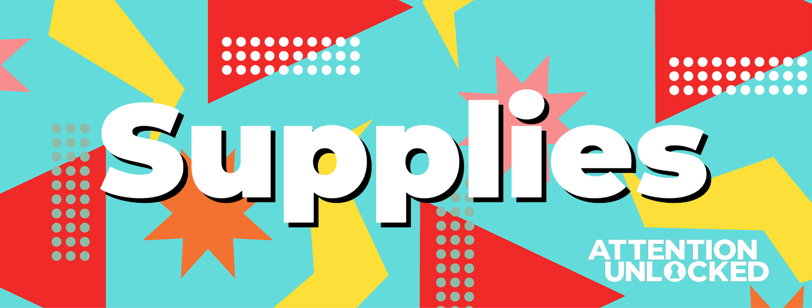 Below we have listed some of the supplies you’ll use throughout Attention Unlocked. These product links serve as examples only — please know that there are many great options at various price points, so don’t feel tied to anything we link to. [Disclosure: This post may contain affiliate links, meaning TOC may get a commission if you decide to make a purchase through our links, at no cost to you.]