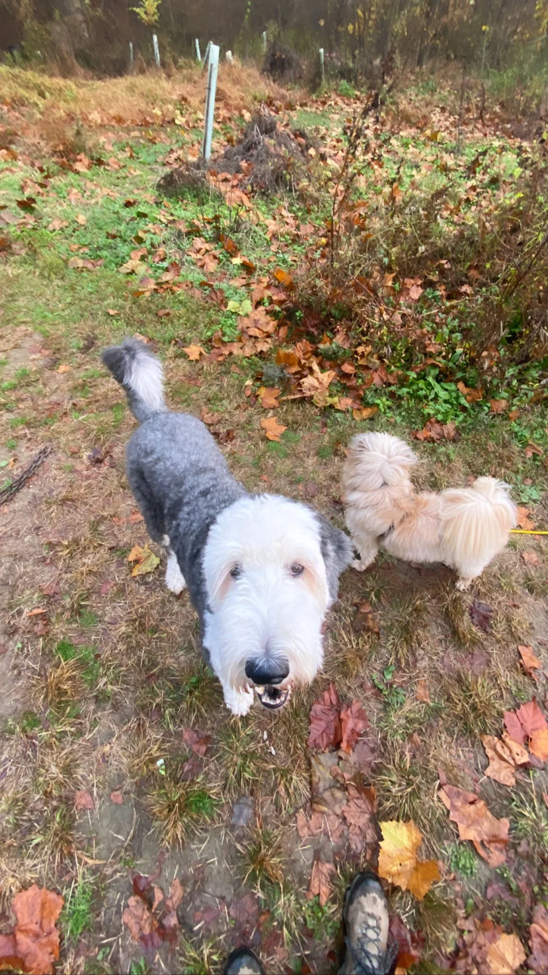 Let me start by painting a picture for you of my two dogs’, Otis and Sully, typically offered behaviors on trail walks (aka what they do voluntarily rather than in response to a verbal cue). As you read, consider which dog’s history may make them more likely to recall and why.