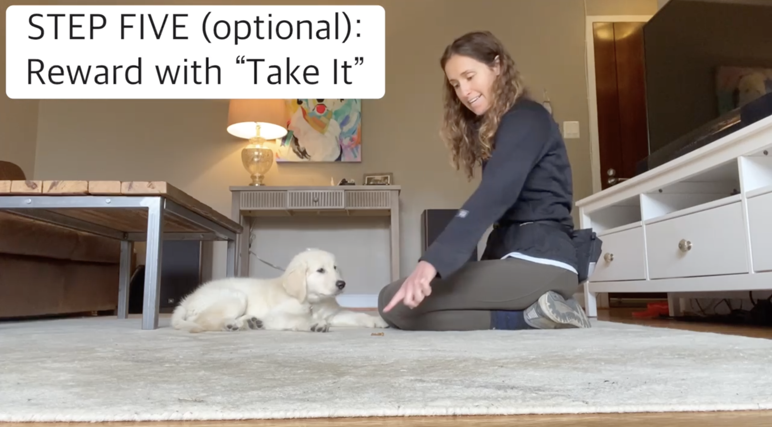 If your dog starts going for the item, simply don’t mark and reward. Take a step back to make the game a little easier before progressing again (in other words, make that item less tempting by holding the paper towel roll further away or by moving it less).