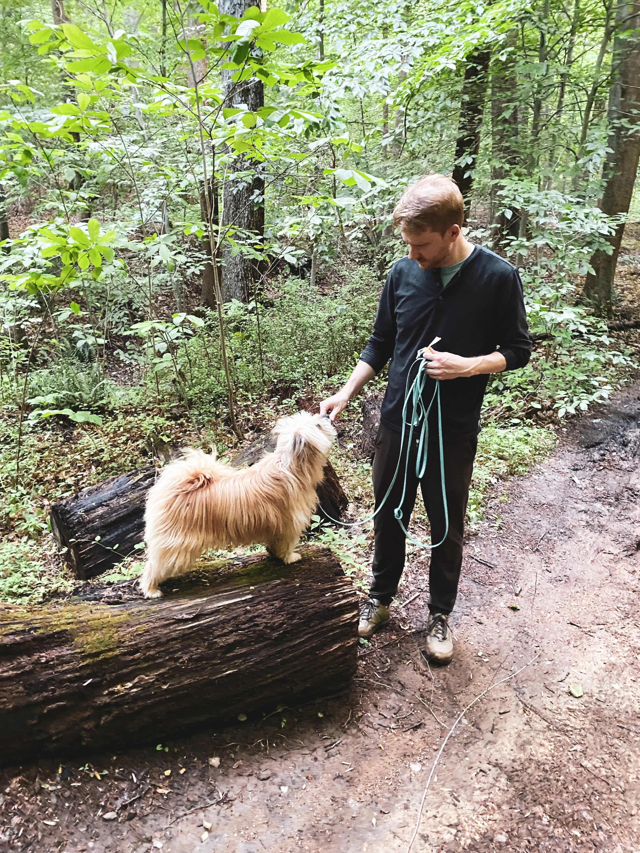 I like to pause like this on hikes now to play attention games with Sully (Otis insists on joining in the fun too!) like the up-down pattern game seen above.