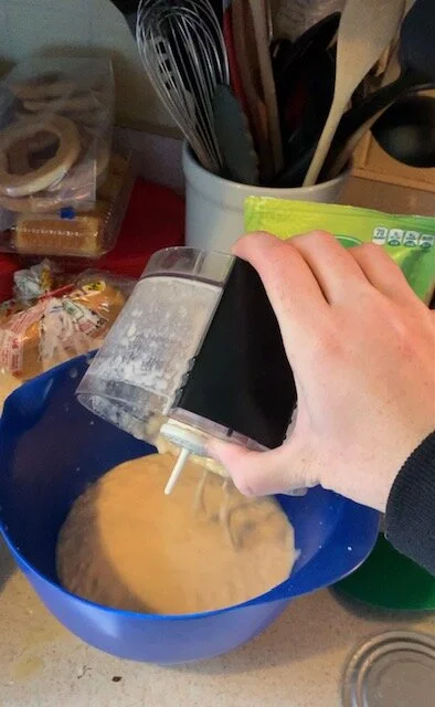 Pour the batter into a plastic bag (or a pastry bag if you have one!)