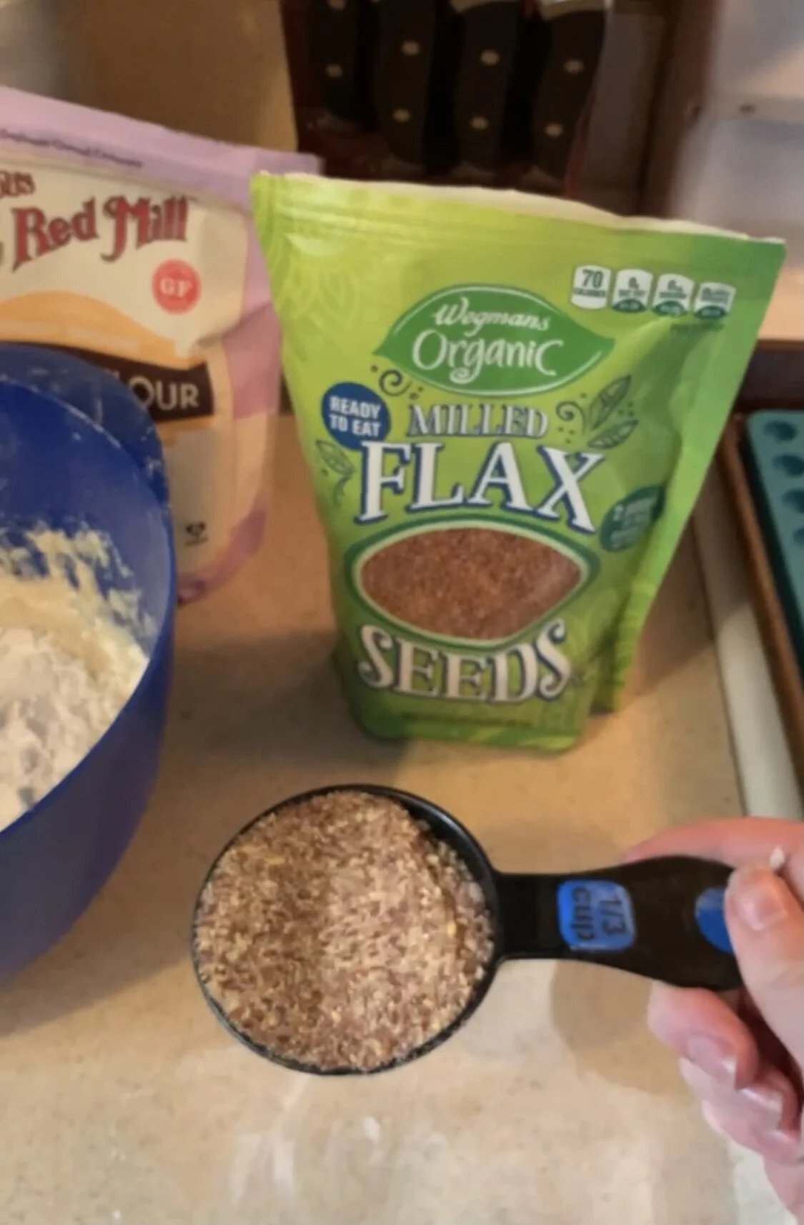Add the 1/3 cup ground flax seed (optional) to the bowl as well