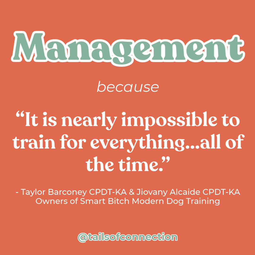Keep reading below for ideas about how to incorporate management into your training routine with your dog. You can share how management is a part of your life by tagging @tailsofconnection and using the hashtag #TOCmanagementseries on Instagram and Facebook.